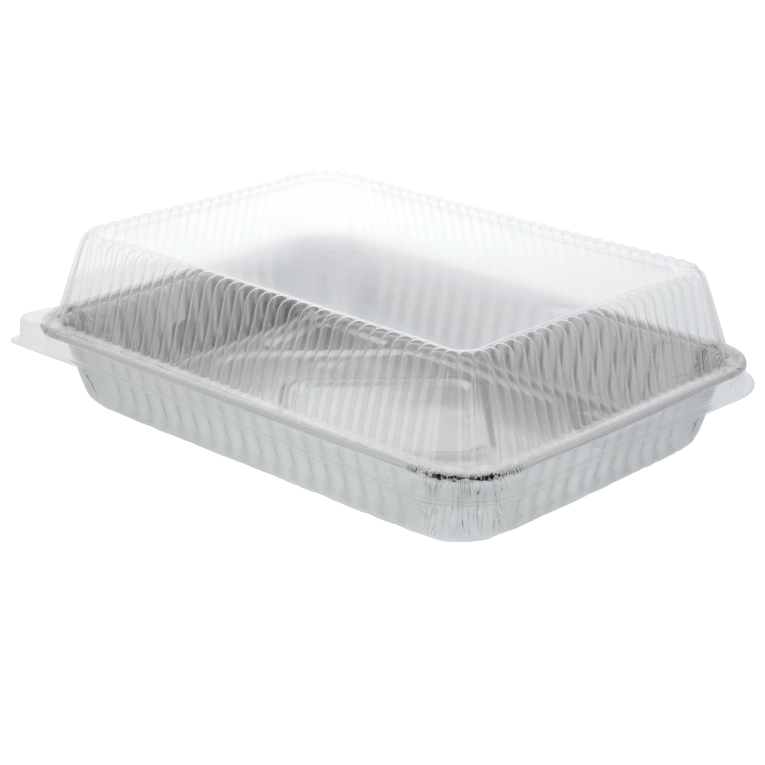 The easiest way to take an dish to any event! Handy disposable foil pans are the perfect size for casseroles, lasagna, hors d?oeuvres, cakes, and more… plus, the convenient plastic lids make transport easy and mess free. A must-have pan for banquets, picnics, catered events, and large family gatherings.