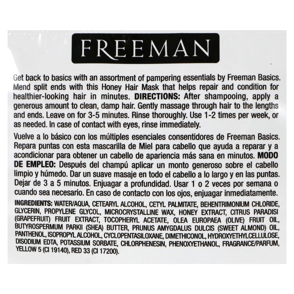 Assortment Details: 0.67-oz. Packs of Freeman® Repairing Honey Hair Masks
