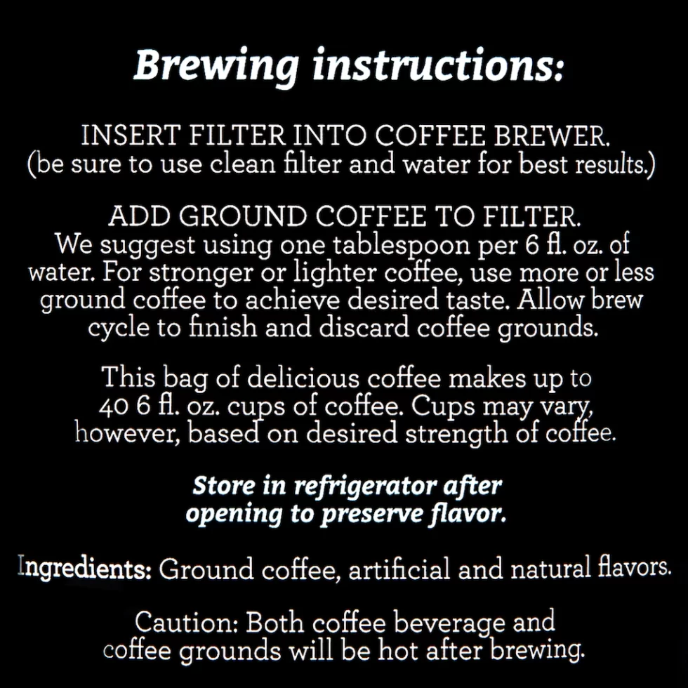 Wake up to the delicious taste of roasted coffee! Premium ground French vanilla flavored roast coffee is ideal for home, gas stations, restaurants, concessions, offices, and cafeterias. Plus, they’re great for resale. Each bags makes 40 cups.