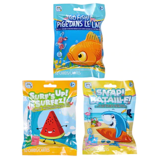 Family game night will never be the same again! With these 3 assorted packs of Surfs Up, Go Fish and Snap styled games children and adults alike will be entertained for hours and hours at a time. Each style has a deck of 52 cards and the games are easy to understand. Great for homes, kids camps, community centers, and more. Ages 6+.