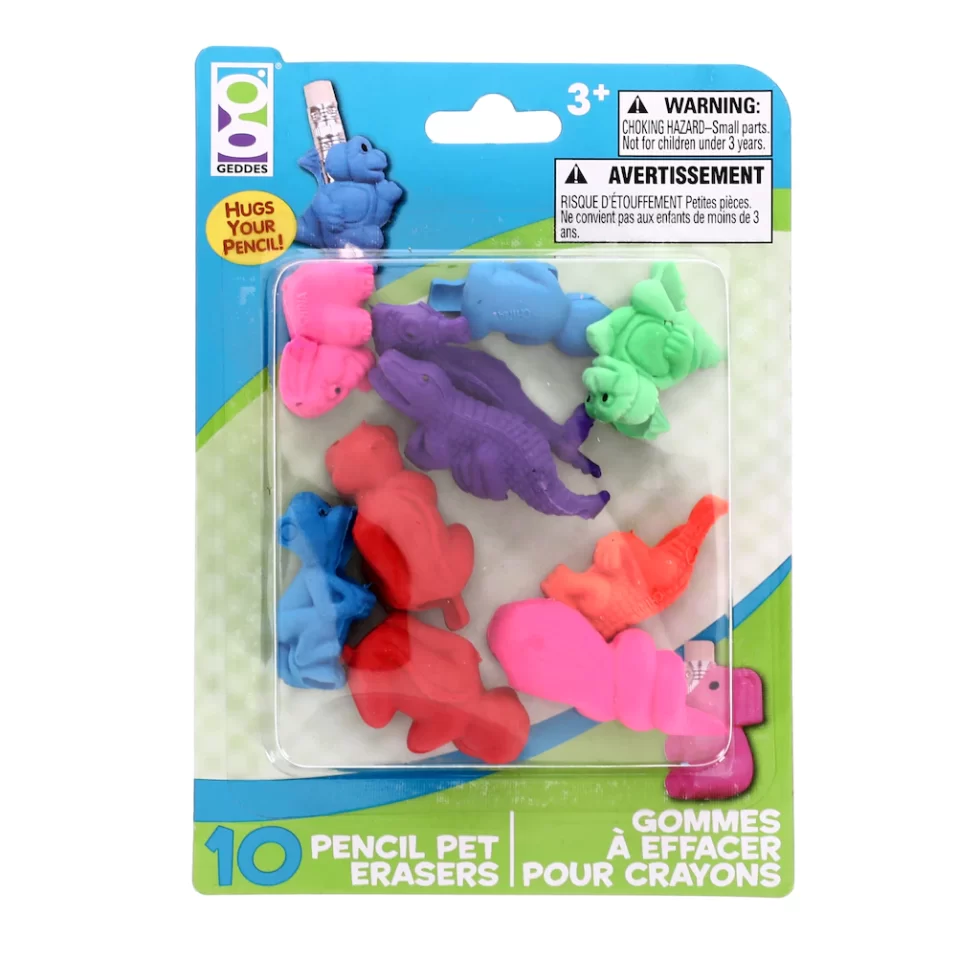 Assortment Details: 10-ct. Packs of Geddes® Animal-Shaped Pencil-Top Erasers