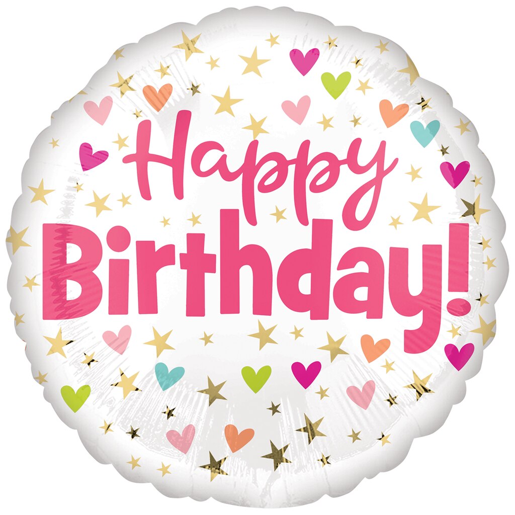 Assortment Details: 18-in. Girls Happy Birthday Hearts & Stars Foil Balloons