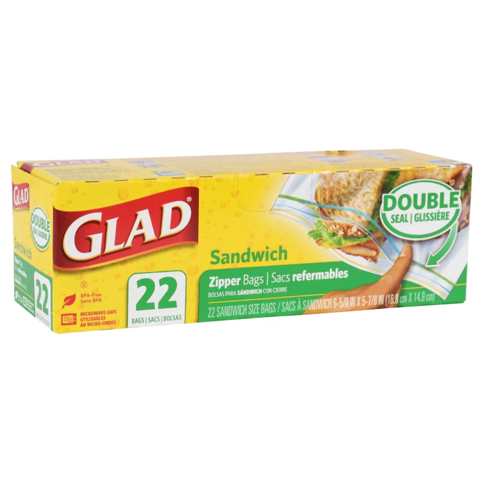 Assortment Details: 22-ct. Boxes Glad® Sandwich Zipper Bags