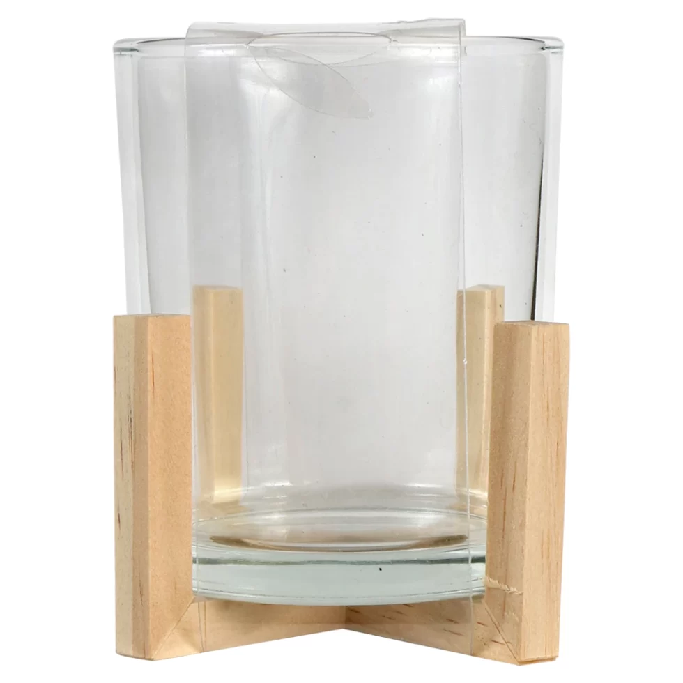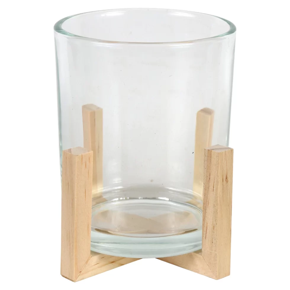 Glass Candleholders with Wooden Stands, 3.5×2.75-in.