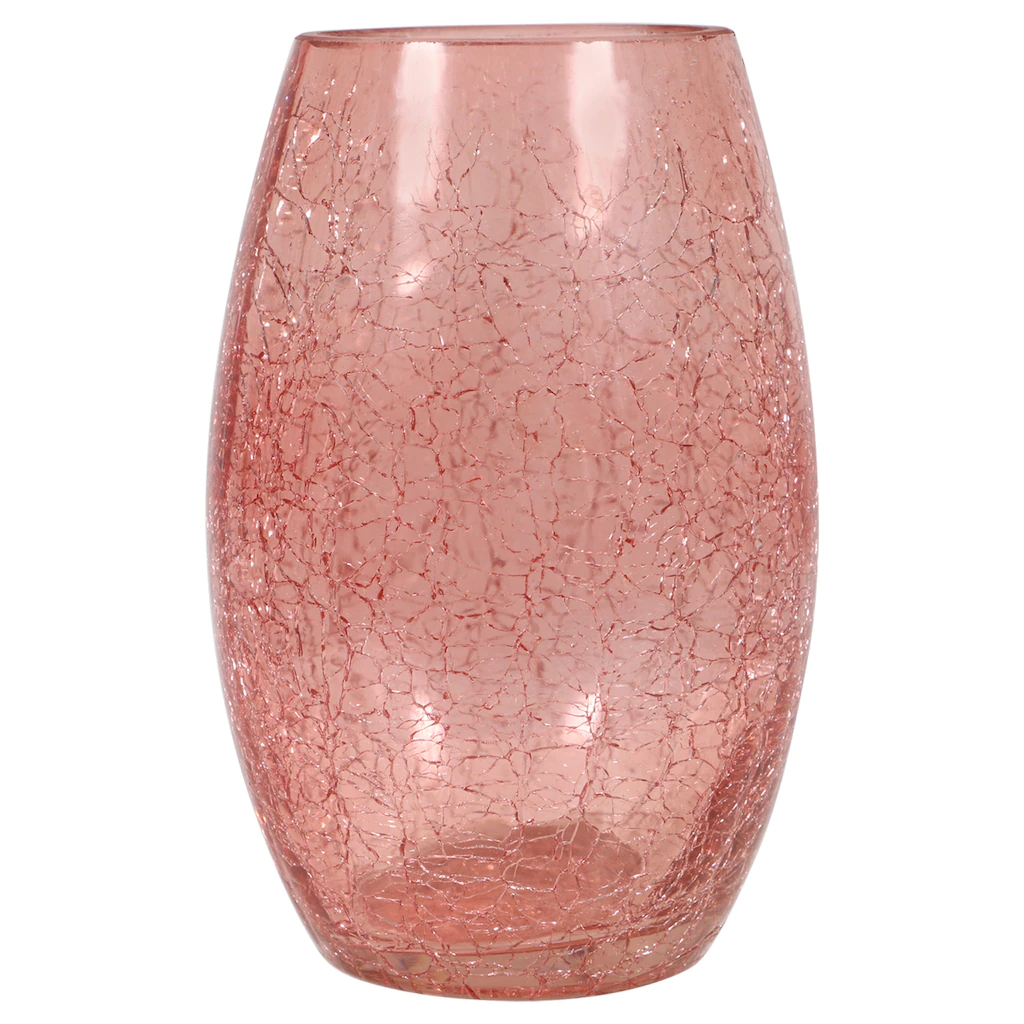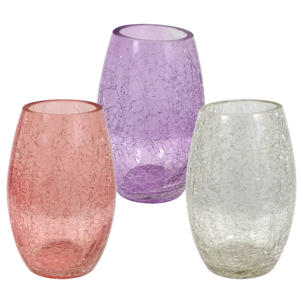 Assortment Details: Glass Crackle Vases assorted among pink, lavender, and clear