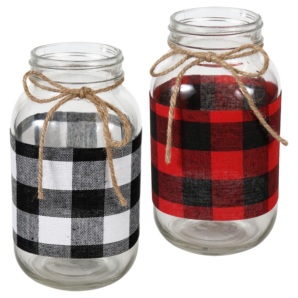 This holiday season make any space feel inviting and cozy with simple decor options that draw the eye. These glass vases are 7-in. tall and come with twine bows and 2 assorted colors of plaid fabric. They are excellent to place flowers in with water, tealight candles, holiday treats, and much more.