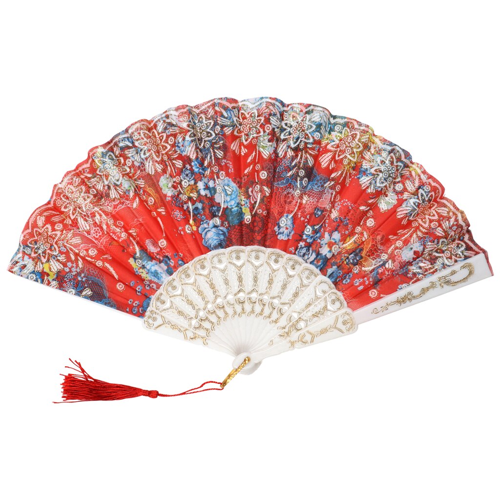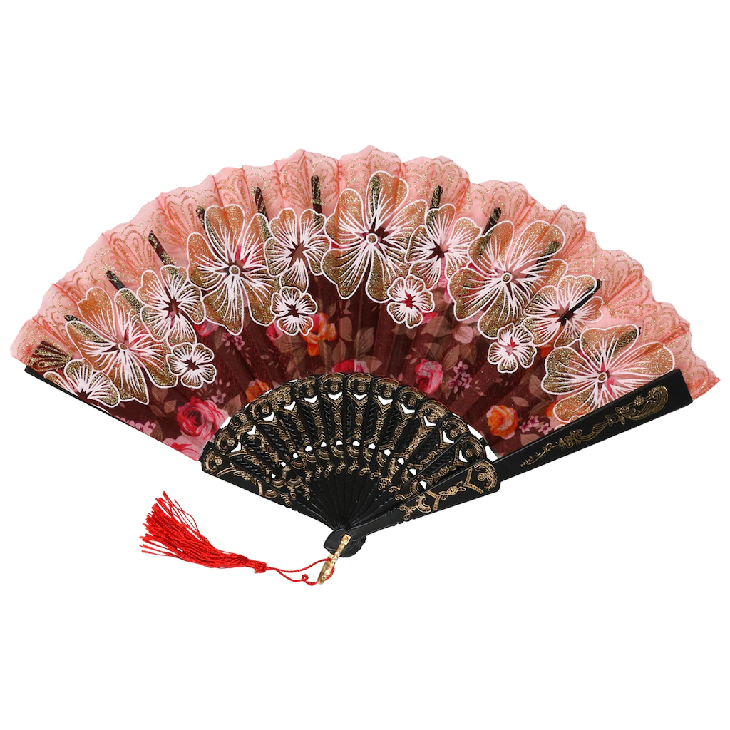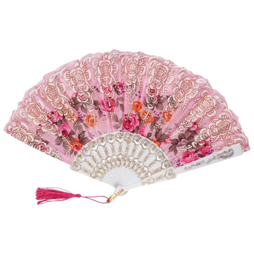 Glitter-Accented Floral Foldable Fans, 9×17 in.
