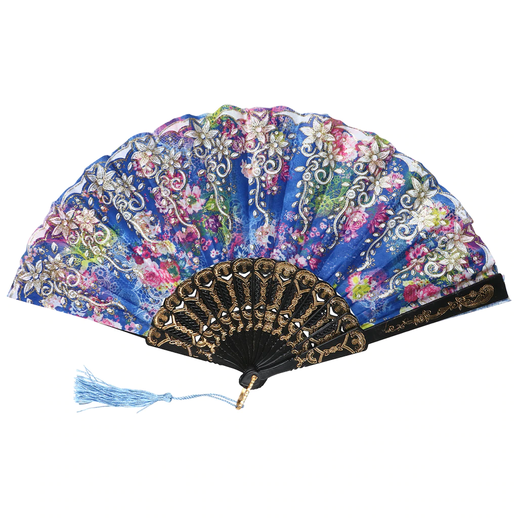 These Glitter-Accented Floral Foldable Fans are excellent for taking to the ballpark on a hot summer day or use as elegant wall decor! Each fan comes assorted among the aqua, coral, light pink, magenta, blue, and red designs shown, has beautiful glitter accents, and features detailed etching on the plastic handles. These traditional folding fans measure 9-in. tall and unfold to a 17-in. span. Easily collapse these fans to fit into your purse, backpack, briefcase, and more! Assortment may vary.