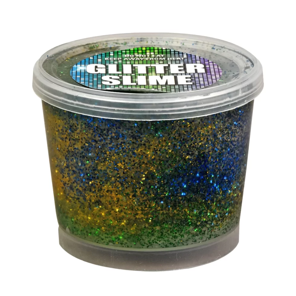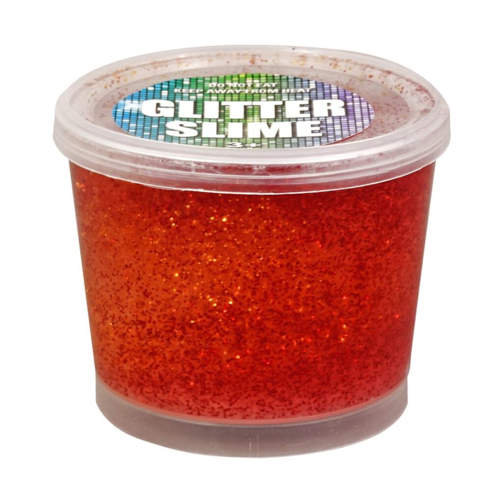 Anyone no matter their age can find fun playing with these containers of glitter slime. They come assorted among red, green, purple, and blue. Ideal for gag gifts, stocking stuffers, and resale. Ages 3+. Do Not Eat. Keep Away From Heat.
