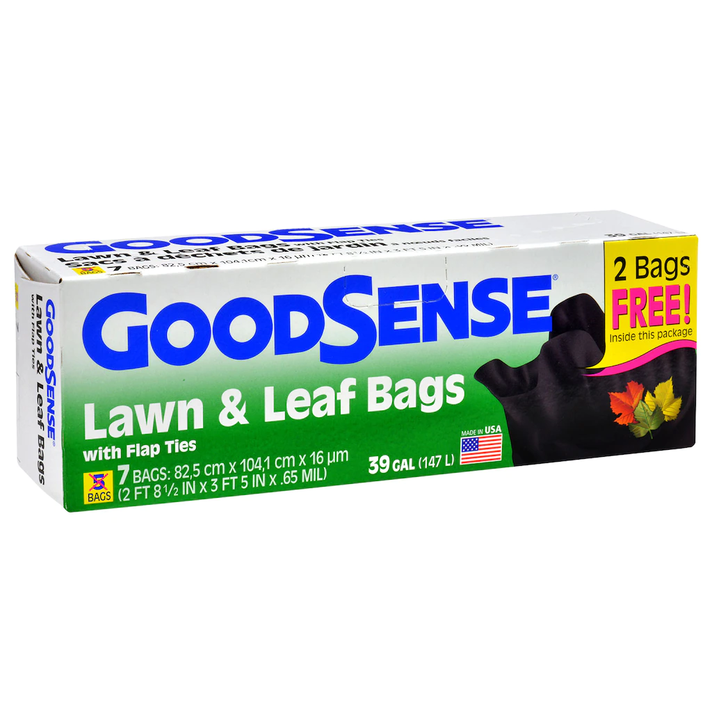 Assortment Details: 7-ct. Boxes of GoodSense® 39-Gallon Jumbo Trash & Lawn Bags with flap ties