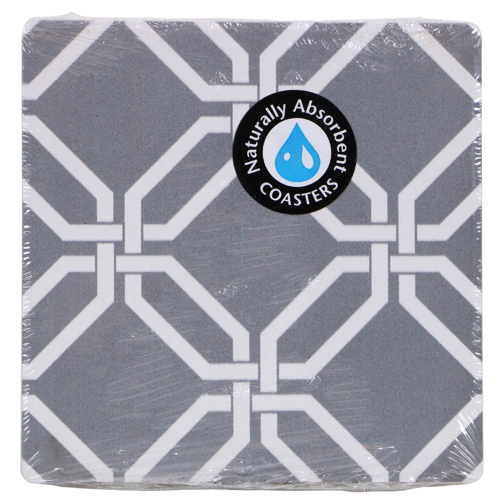 Assortment Details: 3.625×3.625-in. Gray Lattice Printed Drink Coasters