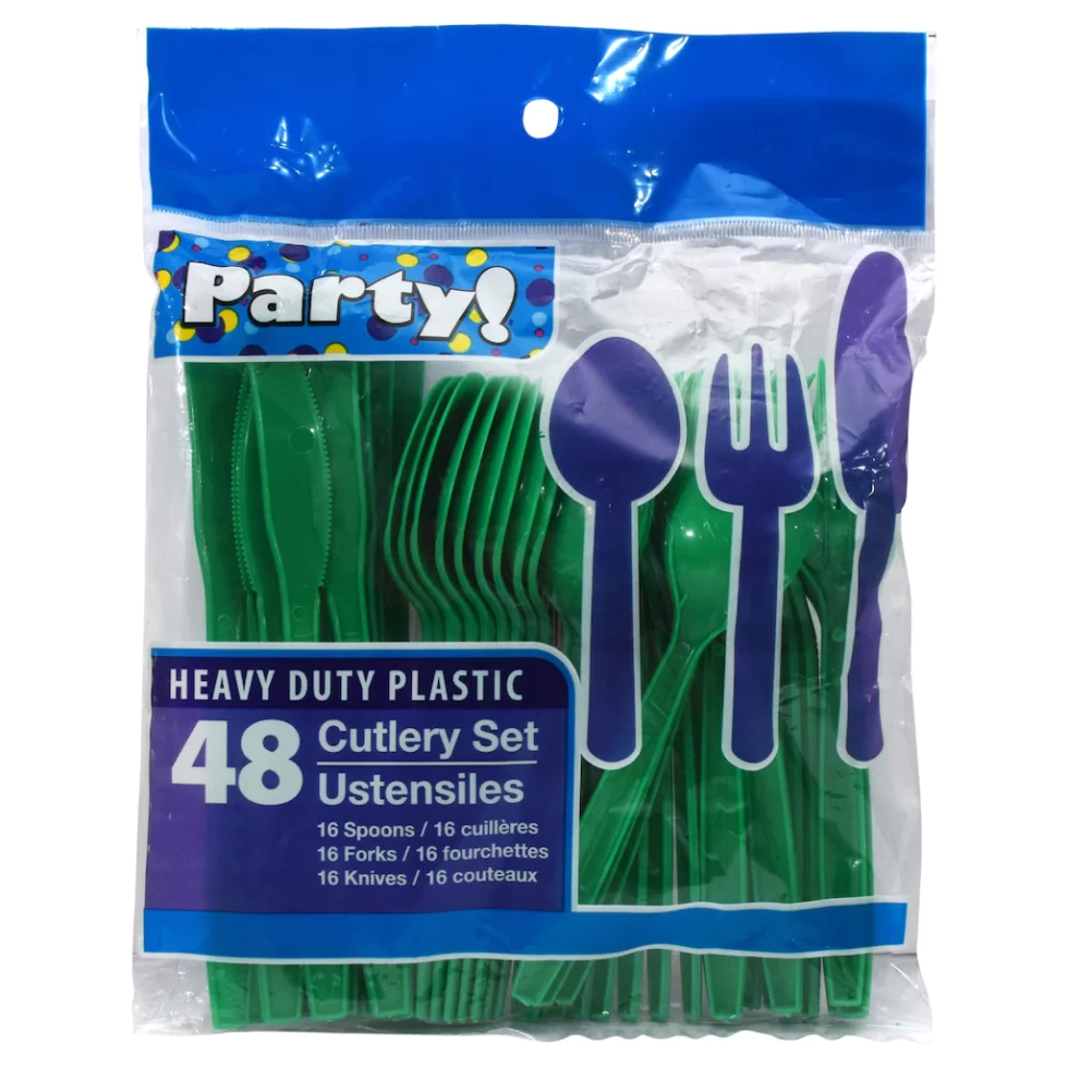 Assortment Details: 48-ct. packs of Green Plastic Utensils.