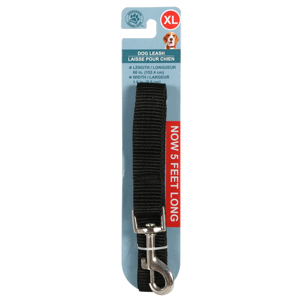 Assortment Details: 48-in. Greenbrier Kennel Club™ Extra-Large Dog Leashes assorted among solid blue, solid black, multicolored, and printed blue, black, or green. Assortment may vary.