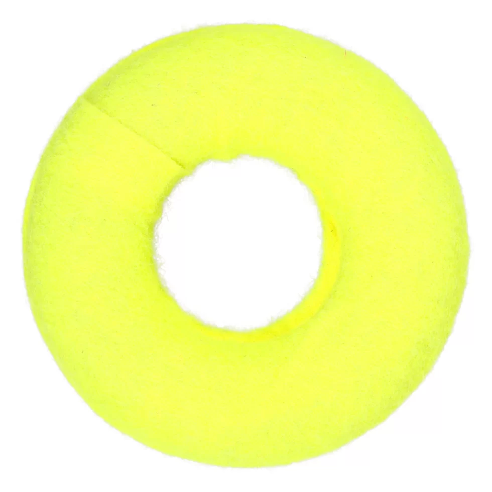 Assortment Details: 6×2.75×1.125-in. Greenbrier Kennel Club™ Fun Shaped Tennis Ball Dog Toys evenly assorted among donut, stick, bone, or beehive shapes