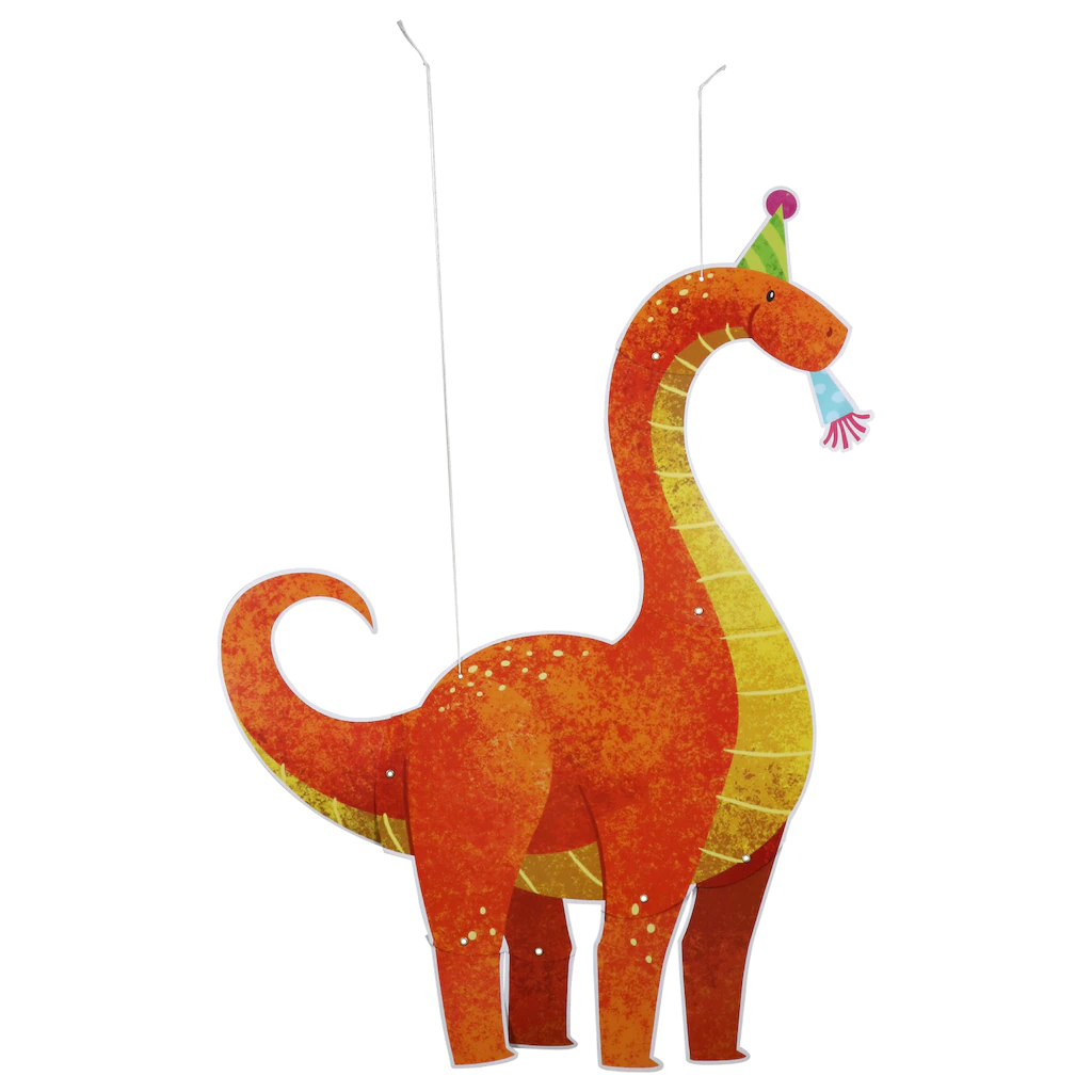 Assortment Details: 30×21.5-in. Hanging Paper Jointed Dinosaur Cutouts assorted among T-Rexes, pterodactyls, stegosauruses, and brachiosauruses