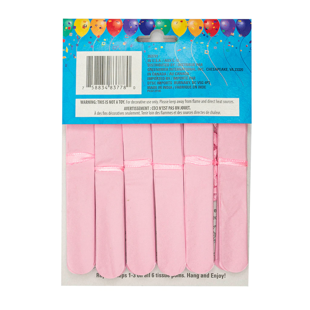 Make your next bash blush! These 9-ft. strands of hanging pink pom-pom garlands are perfect for enriching your next birthday, holiday, retirement, wedding, shower, or anniversary party! Each strand features six 5.5-in. pom-poms, making them great for taking your indoor or outdoor party décor to the next level. Simply hang them up and turn an ordinary party into an extraordinary event!
