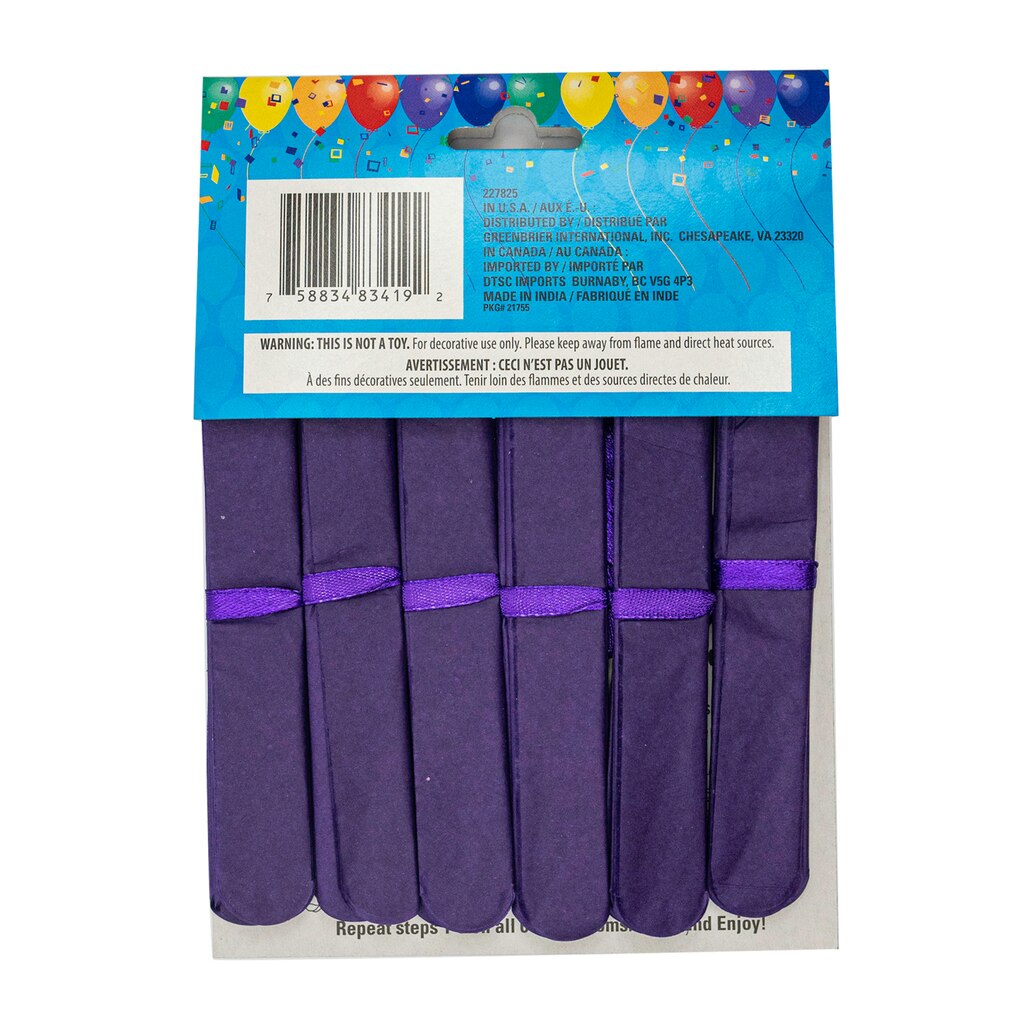 Fun paper pom-poms are an easy way to add a splash of color to your next party or event! Each 9-ft. garland strand contains 6 purple paper pom-poms and are perfect for parties and celebrations, office events, schools, novelty or party supply shops, and more.