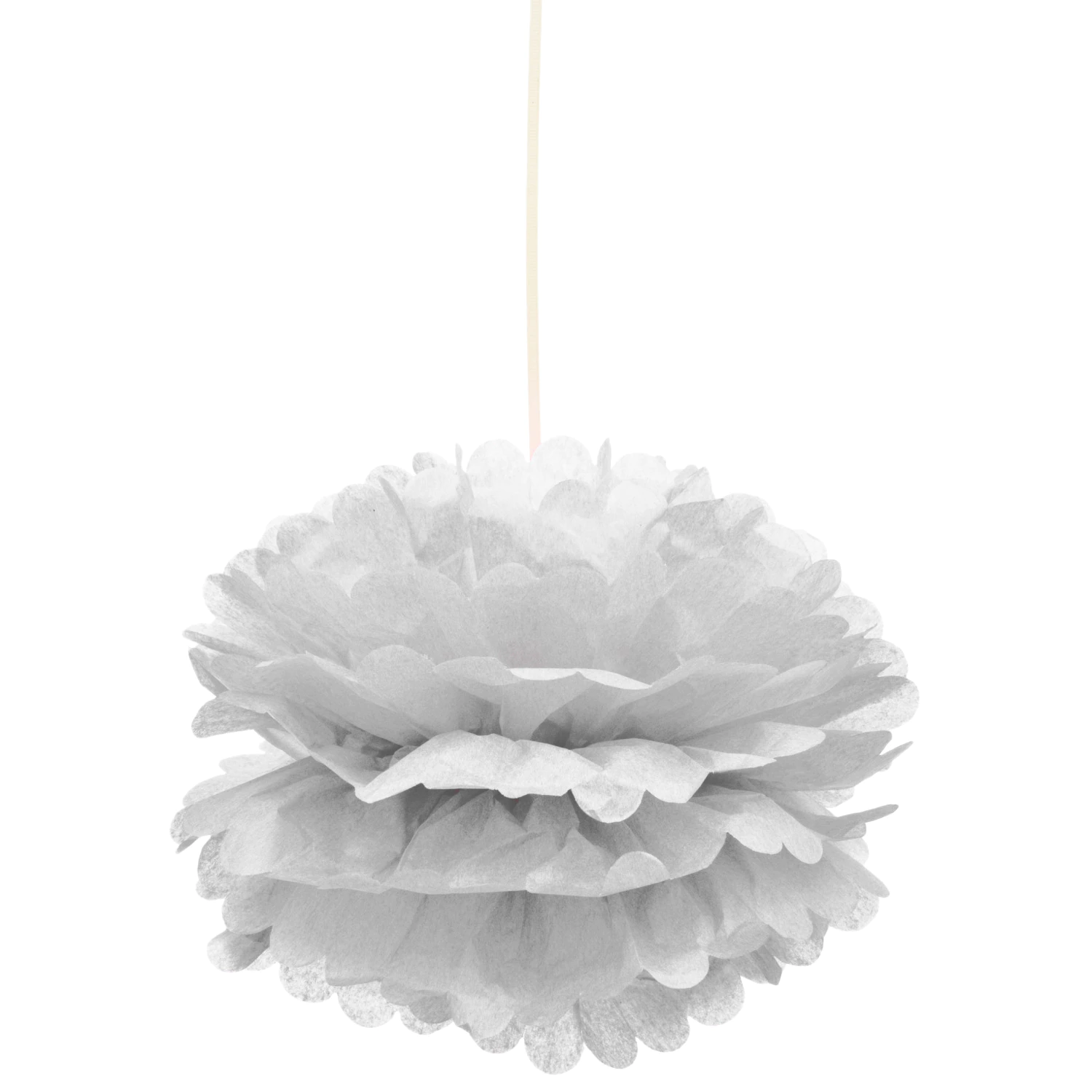 Hanging white pom-poms add a classy touch to any room or party. Each 2-ct. pack contains pom-poms that measure 12-in. and look great hanging at weddings, birthdays, graduations, showers, in dormitories, and in classrooms.