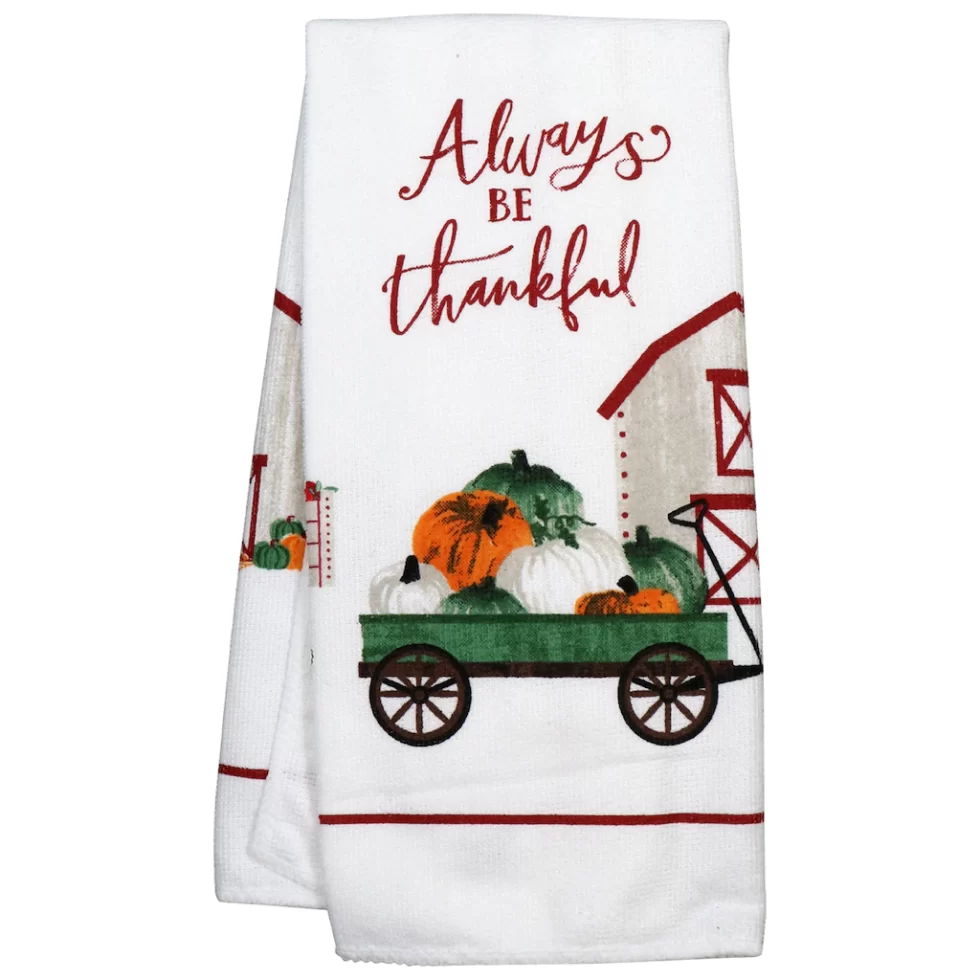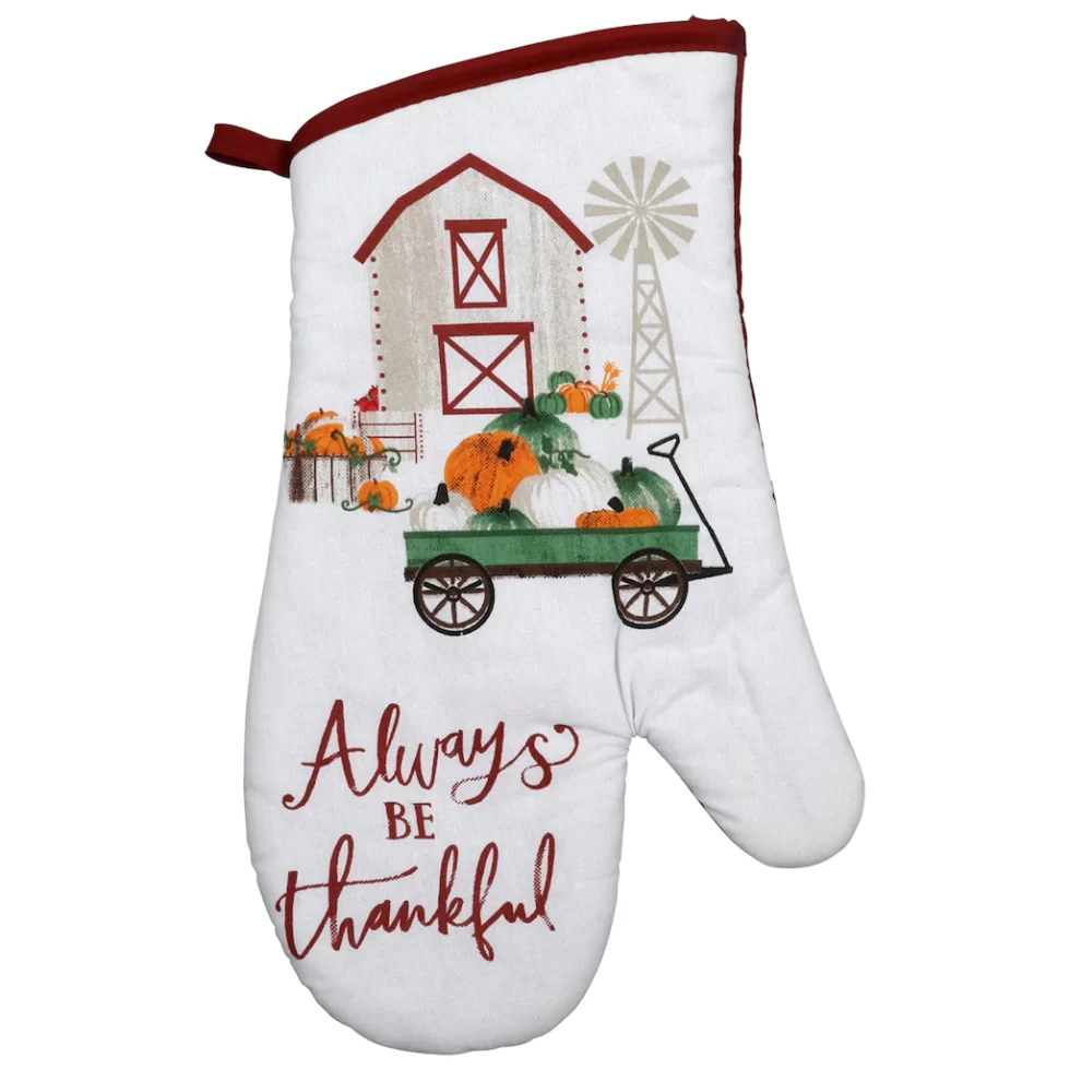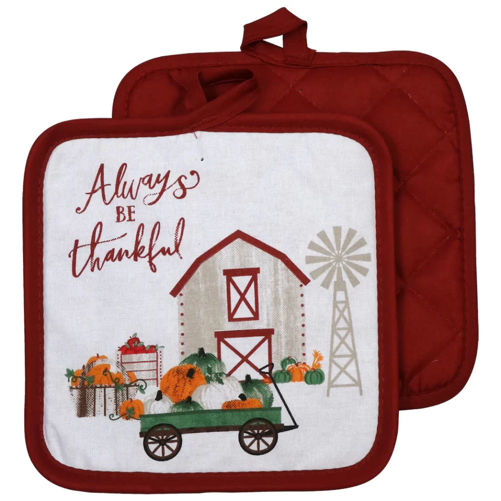 These matching linens make for a fabulous fall kitchen! These country chic kitchen linens come assorted among oven mitts, kitchen towels, and 2-ct. packs of potholders, each in white with farm imagery and pumpkins. Ideal in home kitchens, restaurants, rental properties, and more.