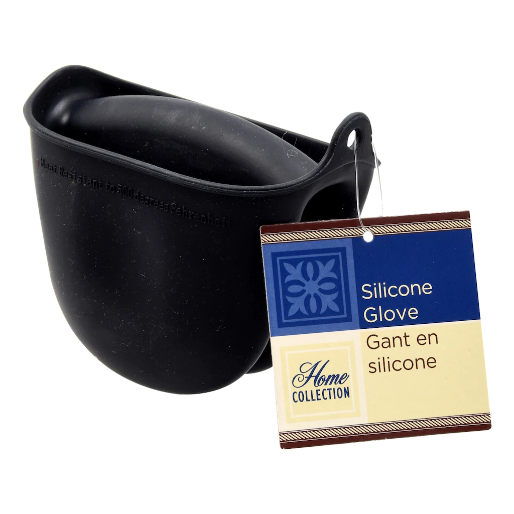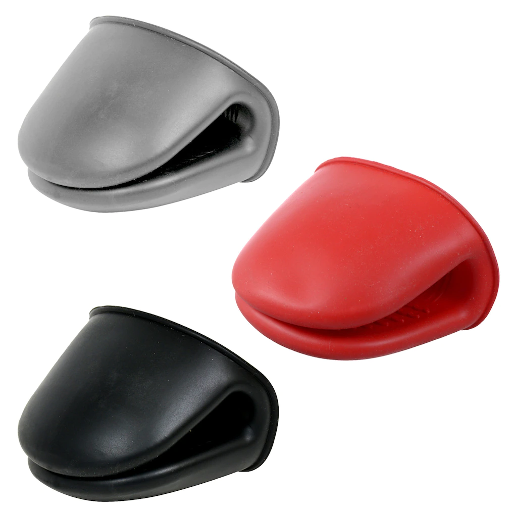Assortment Details: 4×3.5×2.75-in. Home Collection™ Mini Silicone Oven Gloves assorted among black, red, and gray