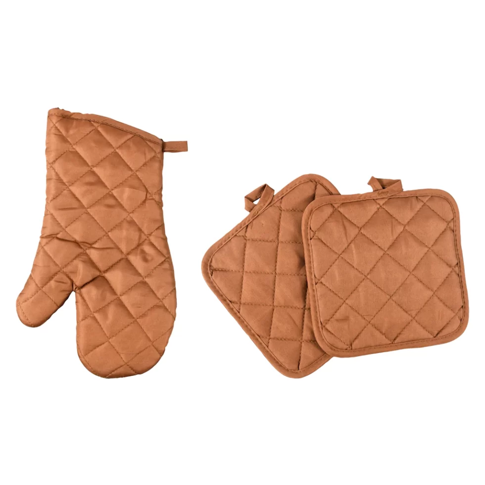 Protect hands and wrists from burns while you cook, bake, and create with these taupe kitchen linens! Thick cotton-quilted oven mitts and pot holders are a staple of every busy kitchen and have loops stitched in so hanging storage is easy. Oven mitts are generously sized at 7×13-in. and fit almost every hand. Pot holders measure 7×7-in. and are 2-ct packs. Each case of taupe kitchen linens is assorted between single 7×13-in. oven mitts (14 total, $1/ea.), and 2-ct. packs of 7×7-in. pot holders (10 packs, $1/ea). In total, you will receive 14 oven mitts, and ten 2-ct. packs of pot holders (20 total) for $24 (combined, it’s 34 total items).