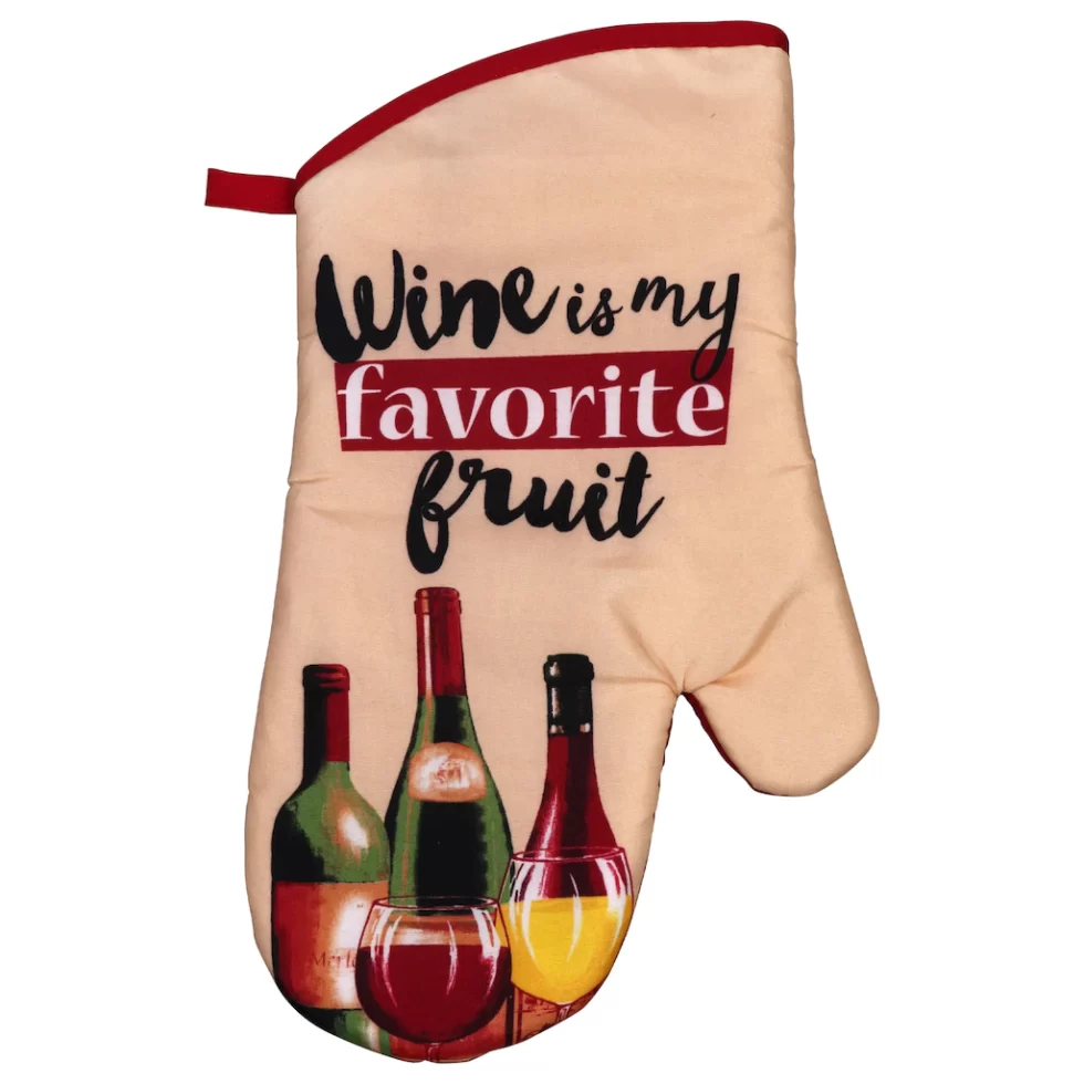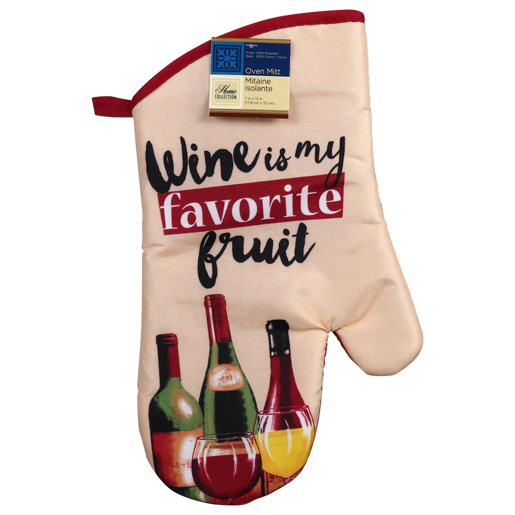 Assortment Details: 13×7-in. Home Collection™ “Wine is my Favorite Fruit” Oven Mitts. Assortment may vary.