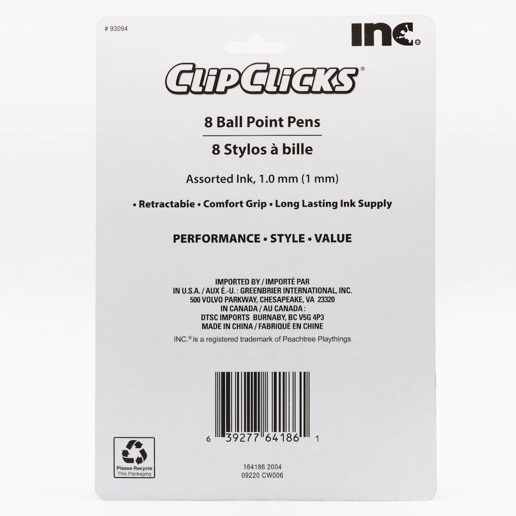 Assortment Details: 8-ct. Packs of Inc.® ClipClicks™ Fashion Color Pens