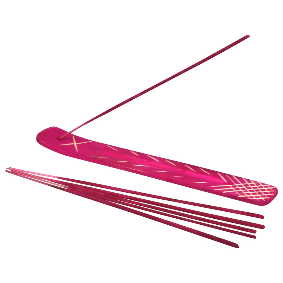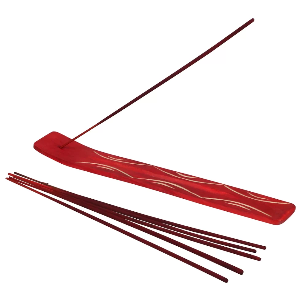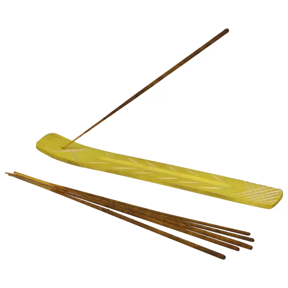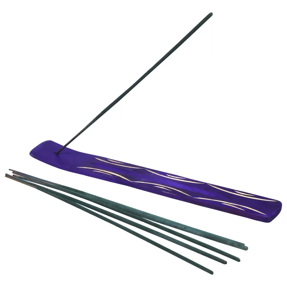 Each of these giftsets includes a wooden insence holder and 10 incense sticks. The insence holder is of the traditional style with a rustic finish and a simple, but lovely, design. These sets make excellent gift for housewarmings. They also make perfect stocking stuffers. Ideal for yoga studios and other boutiques.
