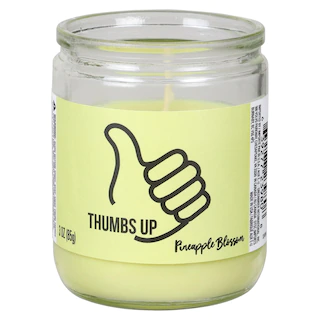 Assortment Details: 3 oz. Inspirational Hand Gesture Jar Candles assorted among “Peace” (light blue), “Fingers Crossed” (aqua), “Thumbs Up” (yellow), and “Heart” (pink)