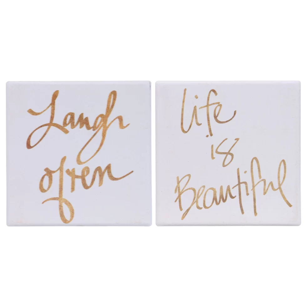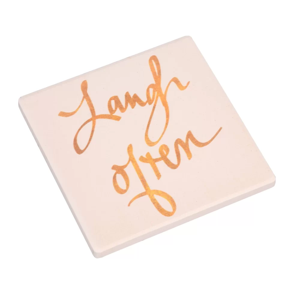 Assortment Details: 3.75-in. Inspirational Stone Coasters assorted between Laugh Often and Life is Beautiful