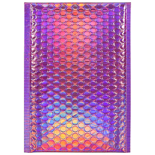 Assortment Details: Iridescent Padded Bubble Mailers assorted among purple, silver, gold, and green