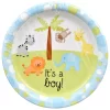 This shower pattern will help you celebrate the arrival of your bouncing baby boy! Featuring cartoon jungle animals, this 7-in.x7-ft. long banner makes a big statement spelling out I.T.’.S. A. B.O.Y. Pair with other blue baby shower items for a coordinated theme… or mix-n-match with our other solid-color party tableware.