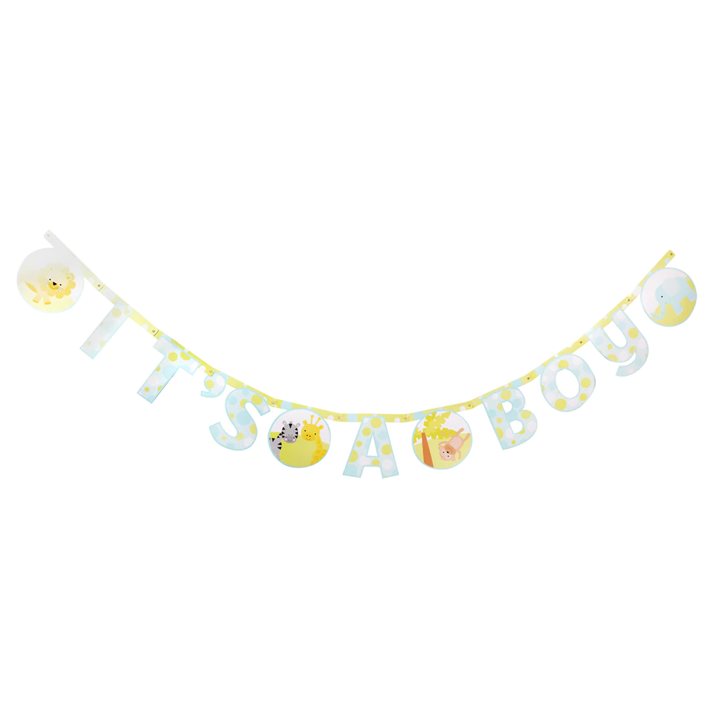 Assortment Details: 7-ft. It’s a Boy Animal-Theme Baby Shower Letter Banners