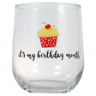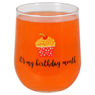 Assortment Details: 16.8-oz. It’s My Birthday Month Printed Stemless Wine Glasses