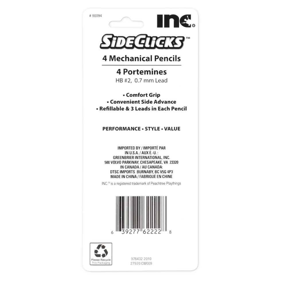 Assortment Details: 4-ct. Packs Jot® #2 Sidecliques Mechanical Pencils