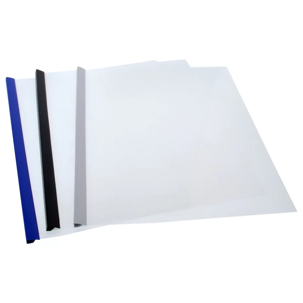 Clear plastic report covers are the perfect way to present your reports and presentations. Stronger than basic paper stock covers and resistant to tearing, each cover is held in place around your paperwork with a plastic binder that slides right over the edge. A great organizational tool for school, office, or home. Each pack contains binders with gray, blue, and black plastic binder slides.