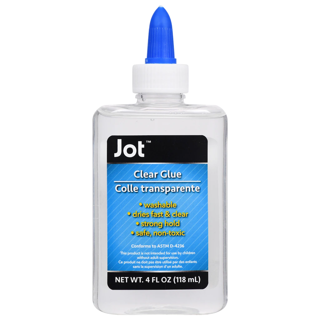 Jot clear school glue is safe for young children. It is non-toxic clear school glue and is perfect for all of your creative projects! It offers a strong hold. It dries fast and clear. Plus, it’s washable. Ideal for home, work, care facilities, schools, camps, and day care centers. Ages 3+.