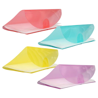 Assortment Details: 4.875×8.875-in. Jot® Colorful Coupon Pocket Holders assorted among yellow, purple, blue, and pink