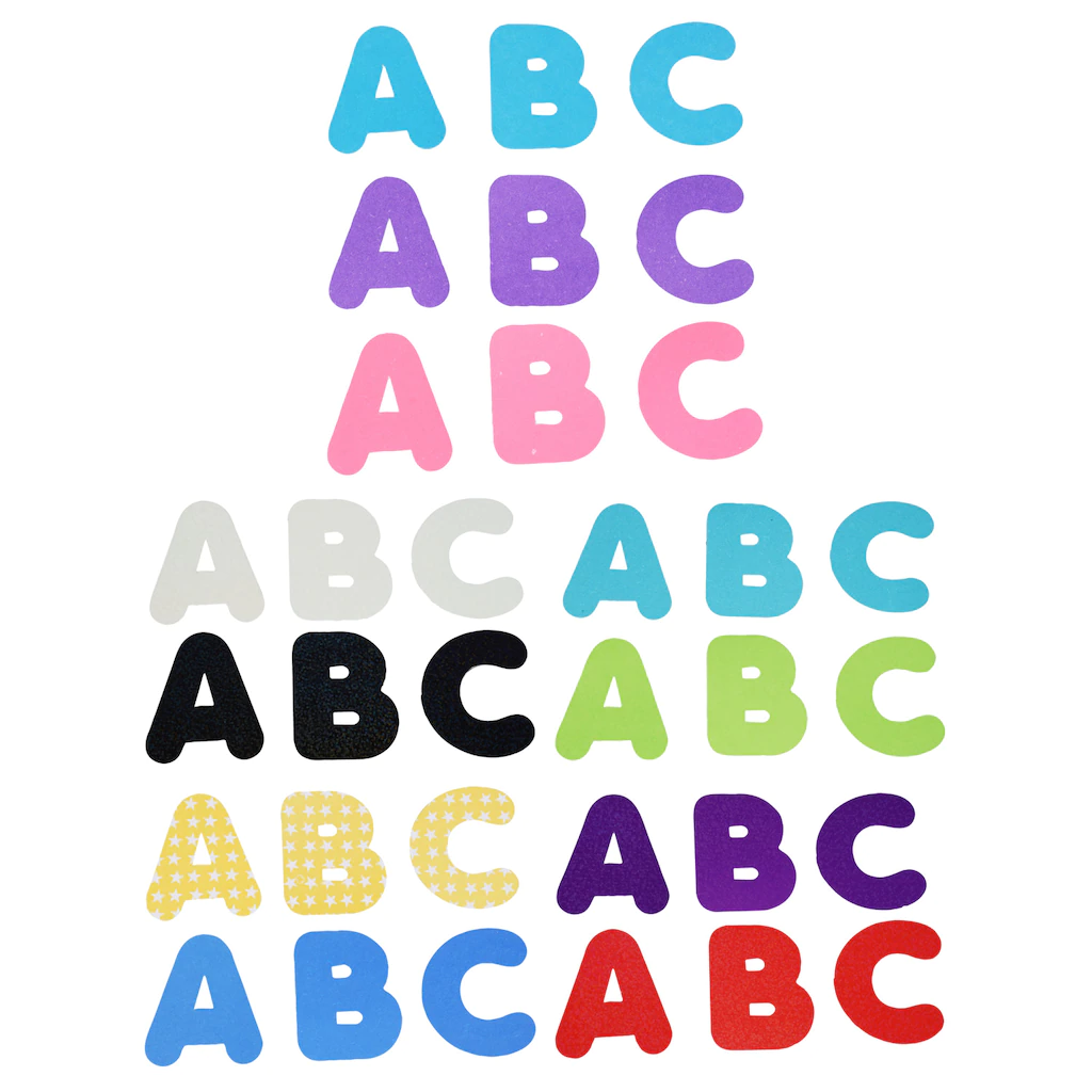 Assortment Details: 52-ct. Packs of Jot™ Die-Cut Poster Letters among the colors shown