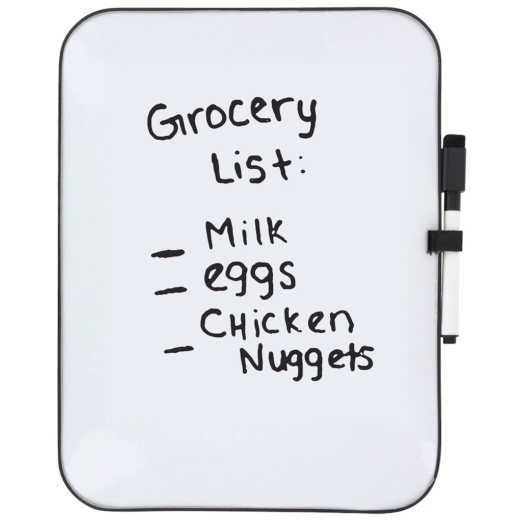 Leave a note without wasting paper with these dry erase boards! Dry erase boards feature classy plastic borders, ample space for writing, and an attached dry erase marker with an eraser top. Perfect for lockers, classrooms, dorm rooms, boardrooms, offices, and households.