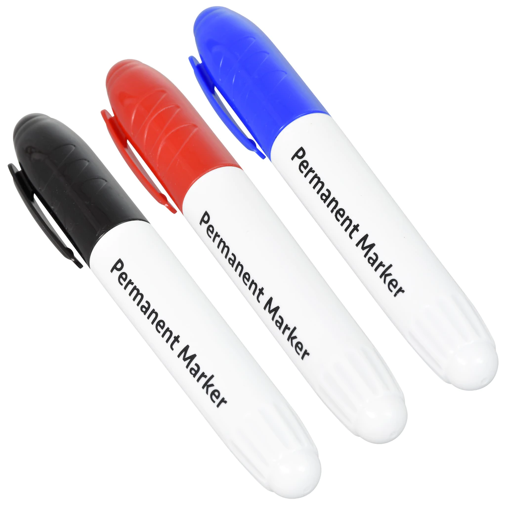 Jumbo permanent markers will work on most surfaces, dry quickly, and their wide tips make writing and coloring a snap! Packs include black, blue, and red colors. Great for schools, homes, offices, and more.