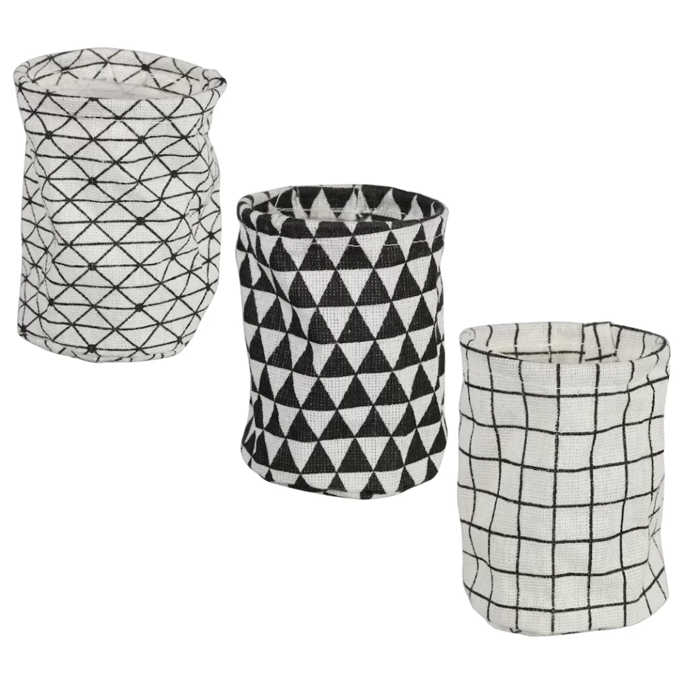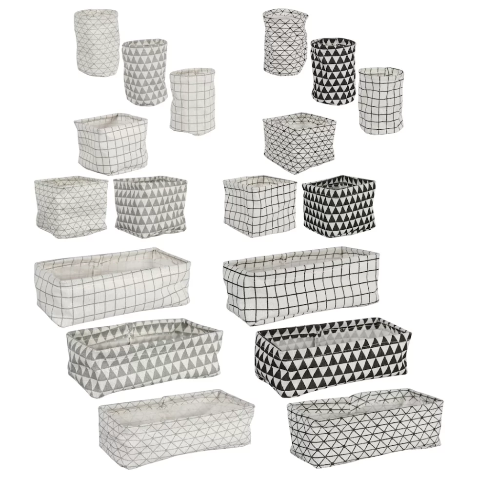 Assortment Details: Jot™ Material Desk Organizers assorted among in three different shapes and two different colors: black & white and gray & whiteassorted shapes and