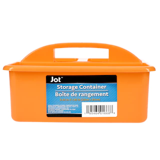Assortment Details: 8.625×7.875×4.5-in. Jot™ Multipurpose Organizers with Top Handles assorted among orange, pink, lime green, and blue.