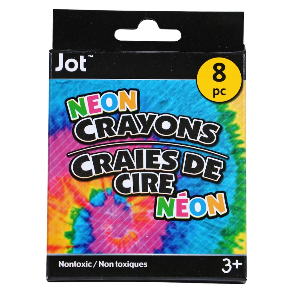 Color in super-bright neon style! These 8-ct. packs of Jot neon crayons are perfect for giving your drawings and doodles a vibrant and colorful neon finish! They’re great for preschools, art classes, at home, and more.