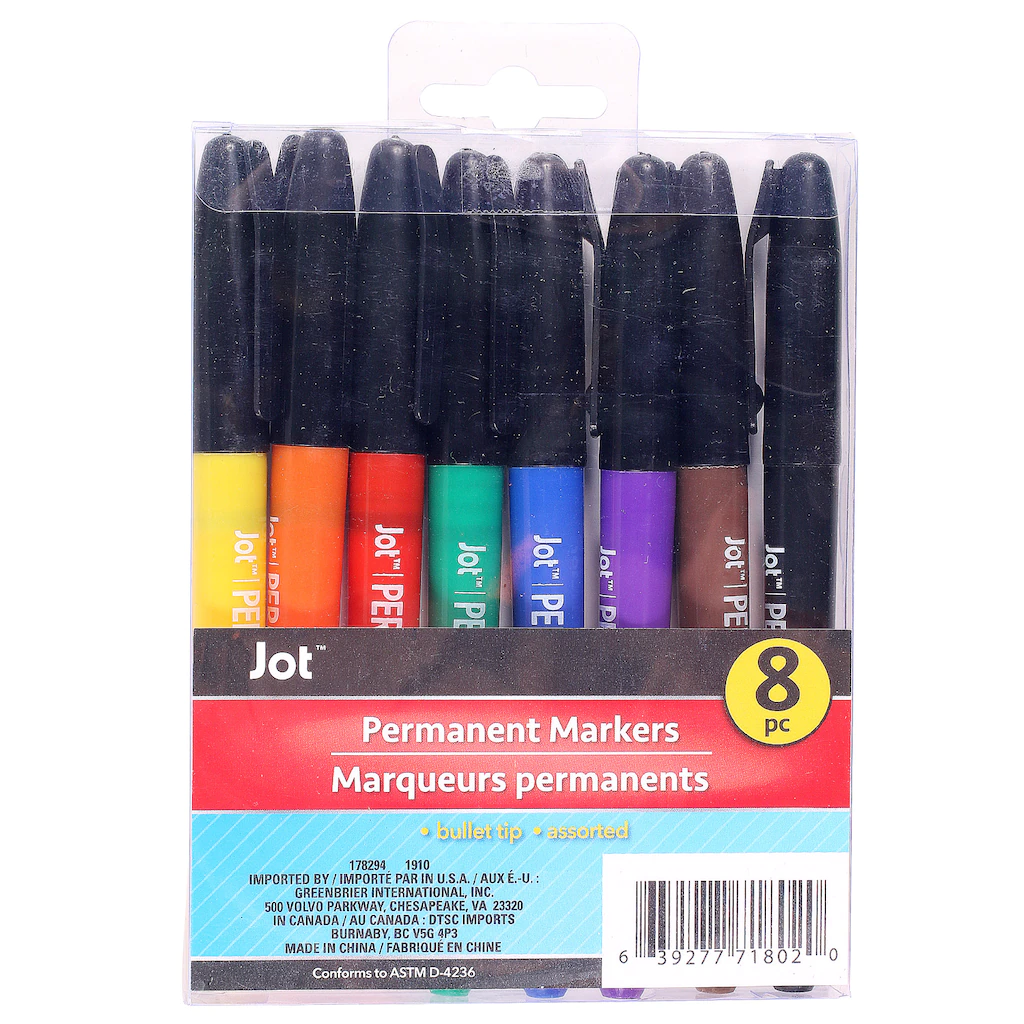 Assortment Details: 8-ct. Packs of Jot™ Permanent Fine-Point Markers including 8 colors
