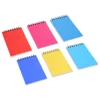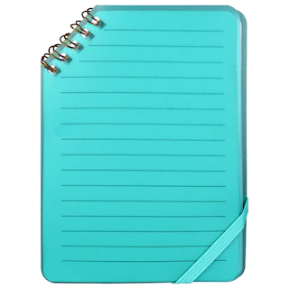 These notebooks are a perfect size for handing out during conferences so attendees can take notes. They are also ideal for keeping in a purse to be certain you can write something down quickly. Each notebook has 48 pages and an elastic band to hold the notebook closed. They are great for students to keep in the front pocket of their backpacks so they can write down assignments. The are assorted among light blue, aqua, and red.