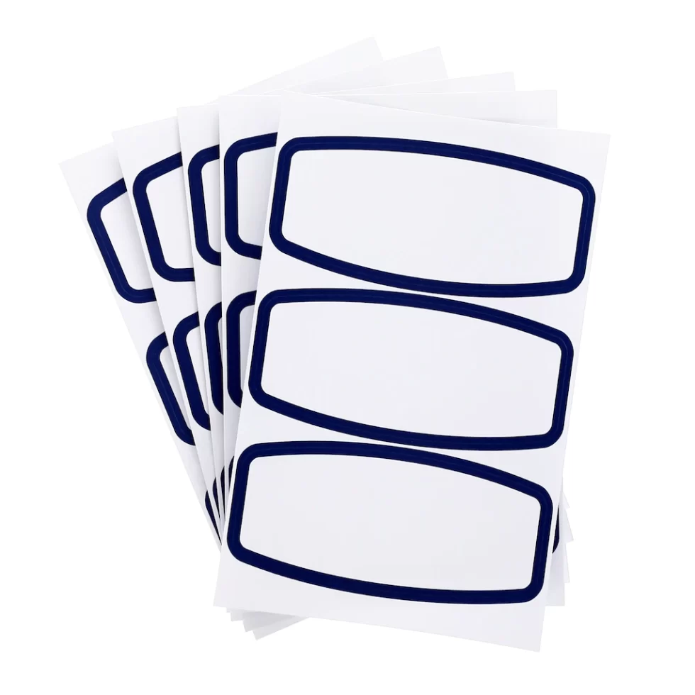 Customizable white labels can be used over and over. Removal labels have a blue border and measure 7.875×7.875-in. They are printable or you can write on them. Perfect for labeling items in offices, homes, garages, tool sheds, and schools.