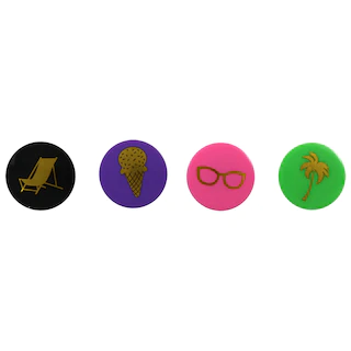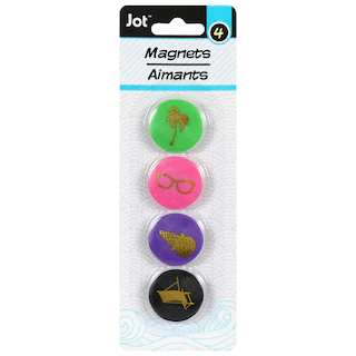 Assortment Details: 4-ct. Packs of Jot™ Round Decorative Magnets assorted among the 4 pack designs shown and the 4 colors shown