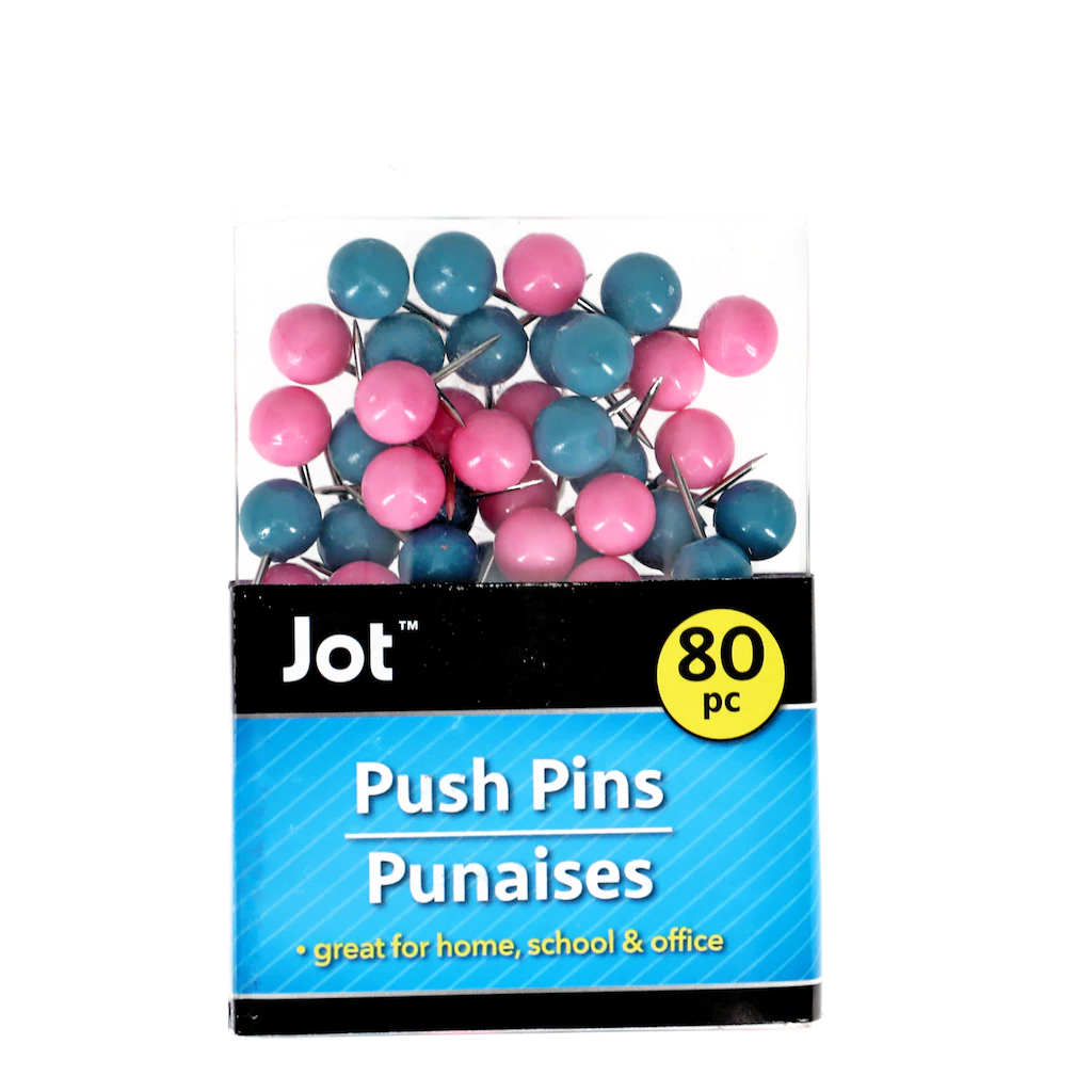 Jot Round-Grip Plastic Push Pins, 80-ct. Packs