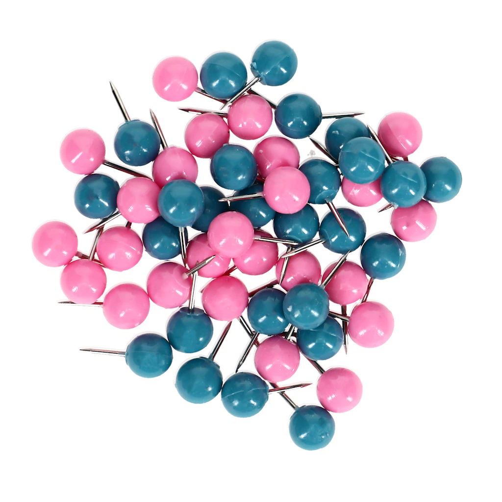 An office supply essential! Plastic and metal push pins are great for schools, office buildings, your home, public notice boards, and more. Their round grip and long pin is also great for marking locations on maps too. The packs each include 80 pins and the colors are assorted between packs of black and packs of blue and pink.